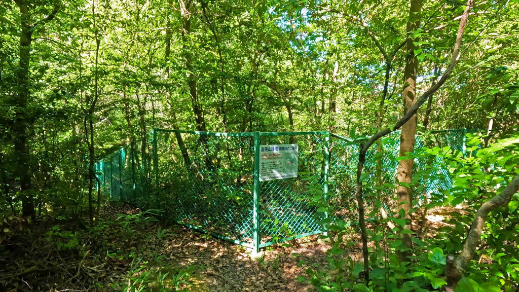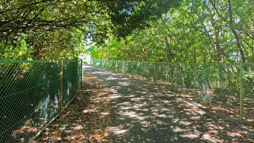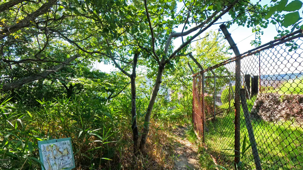 見晴らしのよい場所からそのまま進んでいくと、右手に有刺鉄線が張られたフェンスが現れました。