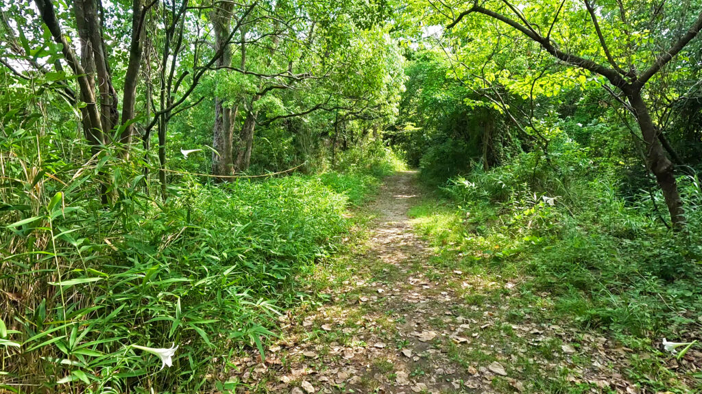 蚊の猛攻に屈して古池から退却し、先ほどの案内板付近まで戻ってきました。