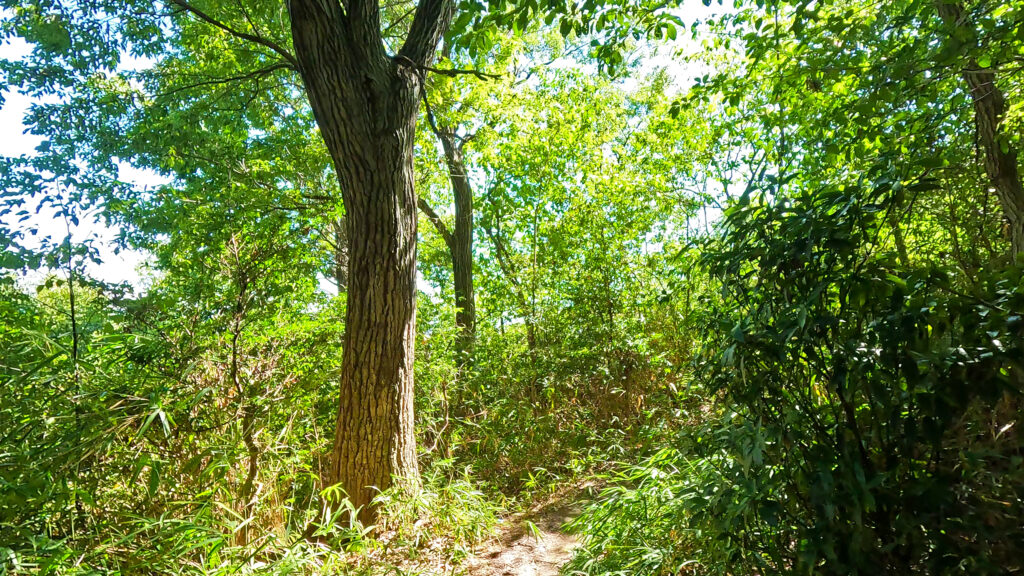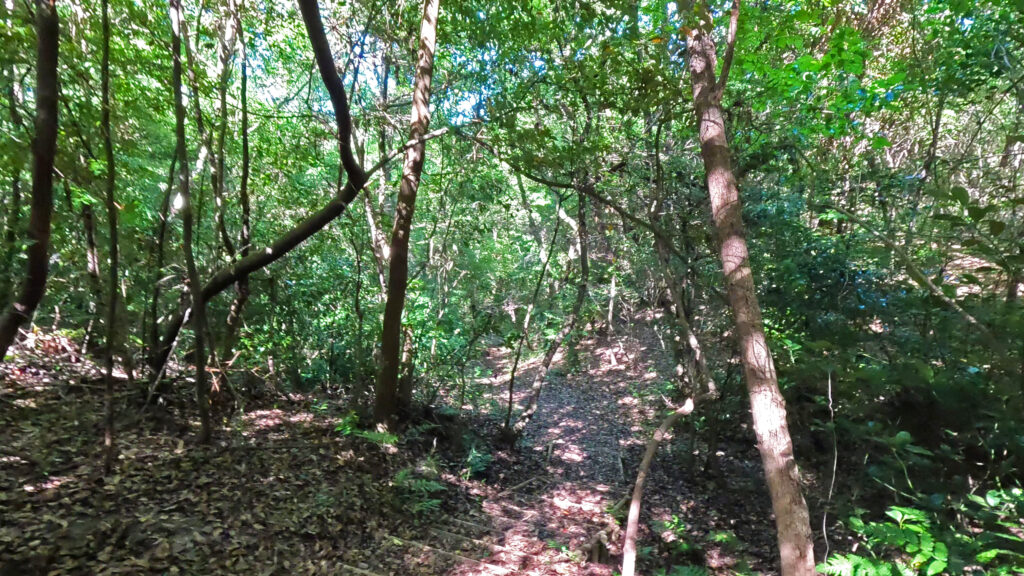 島熊山緑地の散策路は舗装されておらず、歩きやすいとは言えない箇所もあります。