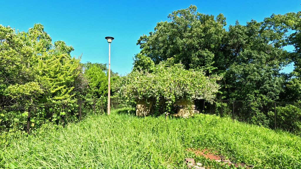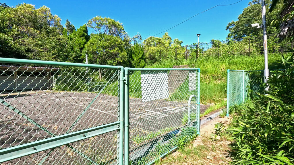 有刺鉄線の張られたフェンスと厳重に施錠された門に阻まれ、当然ながら中に入ることはできません。