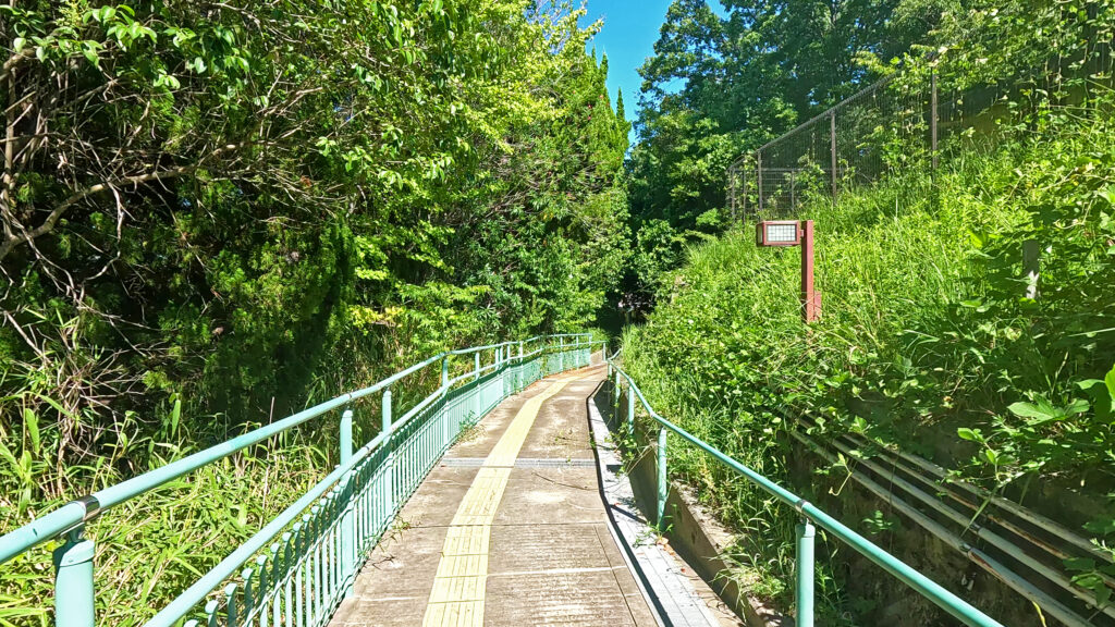 手すりや点字ブロックが設置されており、歩きやすく整えられた道になっています。