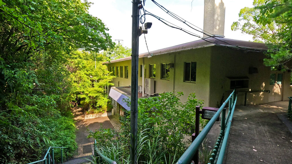 写真では草に覆われて一部しか見えませんが、そこには「豊中市立婦人会館」と記されています。