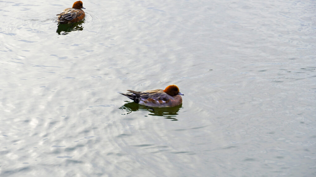 池の水面に目を向けると、カモがゆったりと泳いでいました。