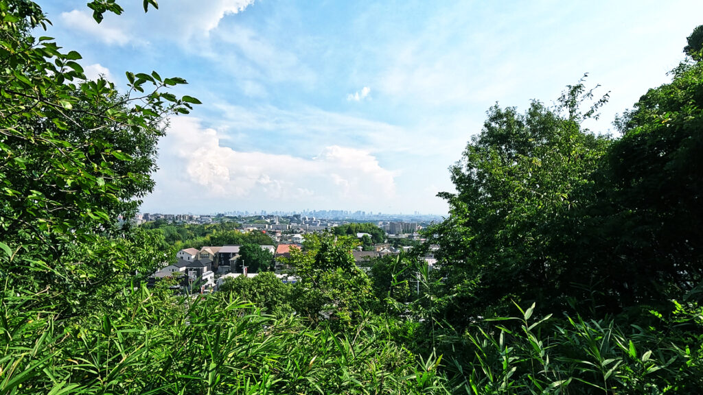 緑地内を緑丘方面へ進むと、見晴らしの良いスポットがあります。