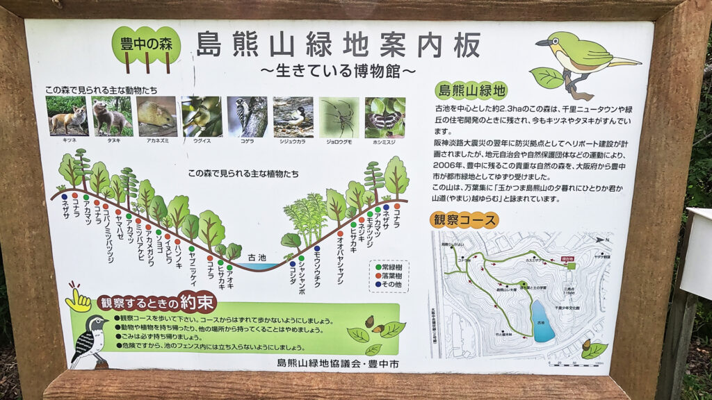 その結果、2006年に大阪府から豊中市へ移管され、現在は「豊中市」と市民・地域団体・周辺学校・NPOで構成された「島熊山緑地協議会」によって、保全・再生活動が行われています。
